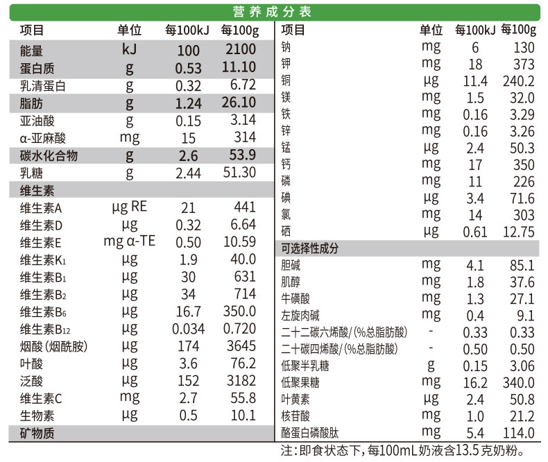 平勺奶粉 依照喂哺用量建議表,加入正確份量(平勺)的奶粉,請勿刻意壓平量勺。